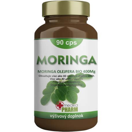 Zloženie 100% prírodný prášok MORINGA OLEJFERA – 400 mg v jednej kapsule, kapsula HPMC (celulózová, vegánska kapsula), Bez lepku, laktózy, GMO a pridaného cukru.